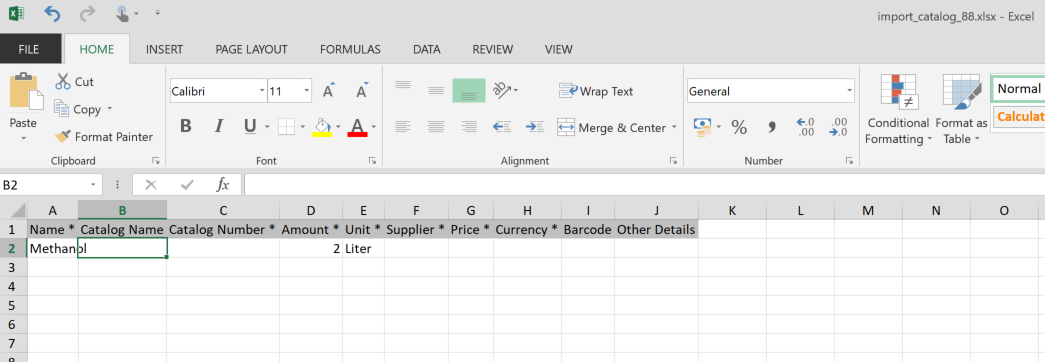Open the downloaded Excel Import Template and complete the Import Template by adding the data of the products in the corresponding fields according to the specification below. Each line will be imported as a separate product in the product catalog. All fields with a "*" are mandatory.